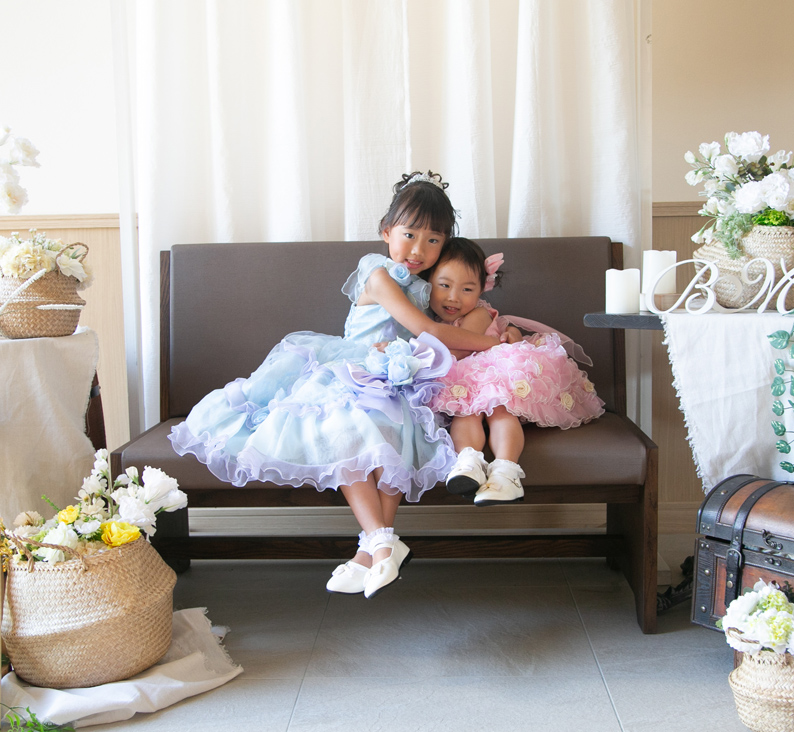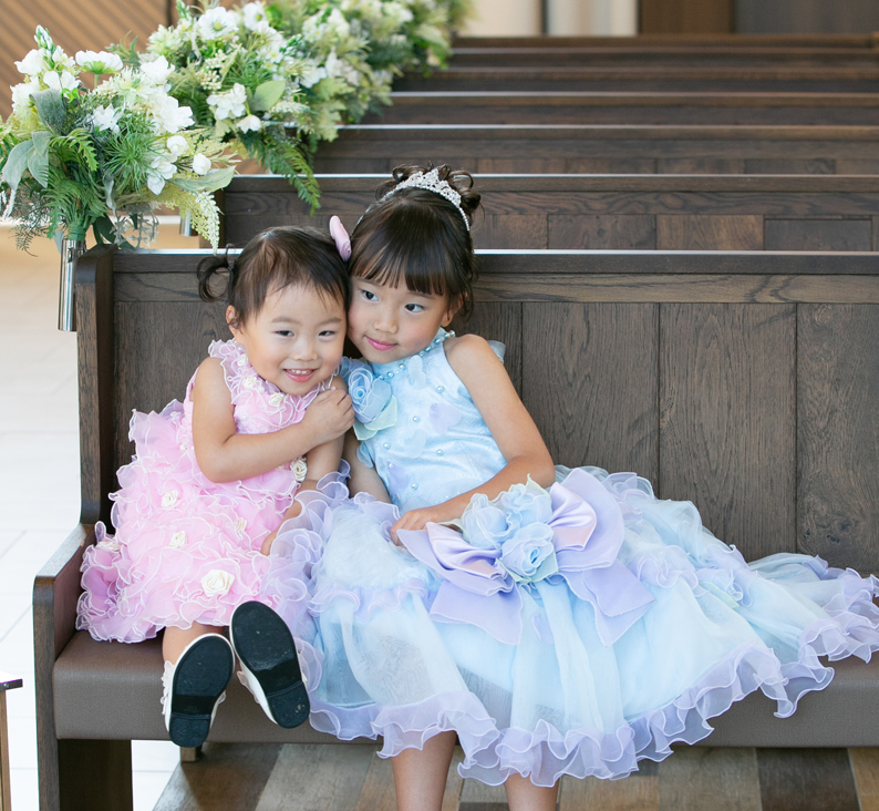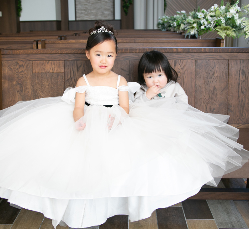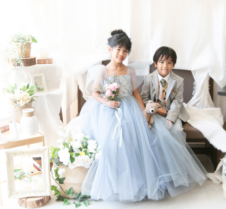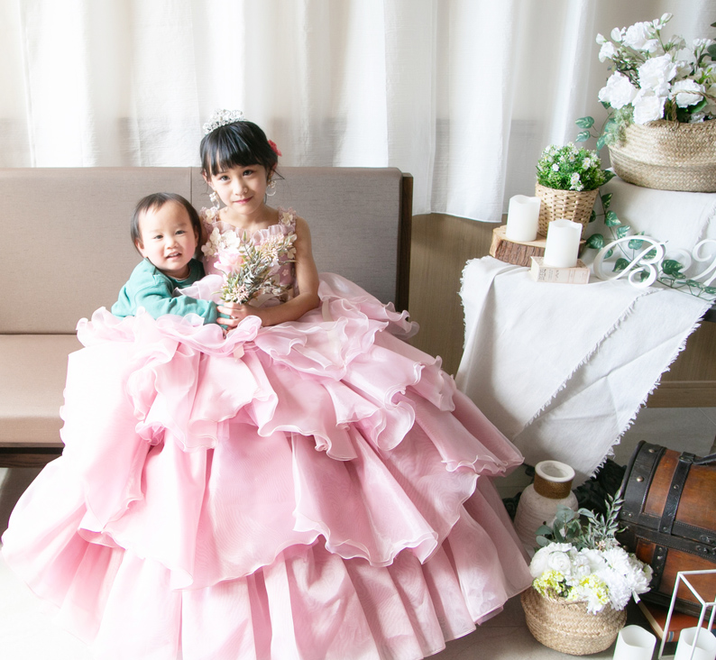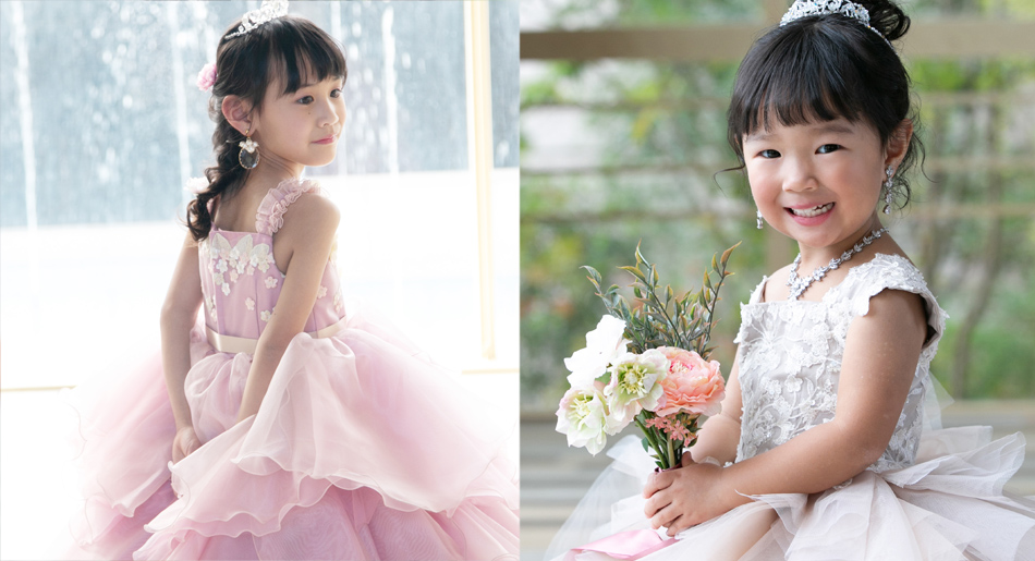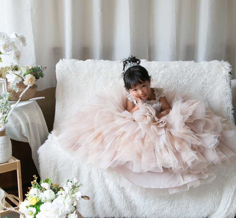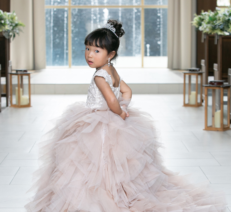 専門式場だからこそのこだわり抜いた衣装の数々は、「かわいくて、一着に絞れない!」というお声も。"いま"っぽくて、ロケーションに映える衣装で、お子様の記念日を誰よりもキラキラに演出いたします
